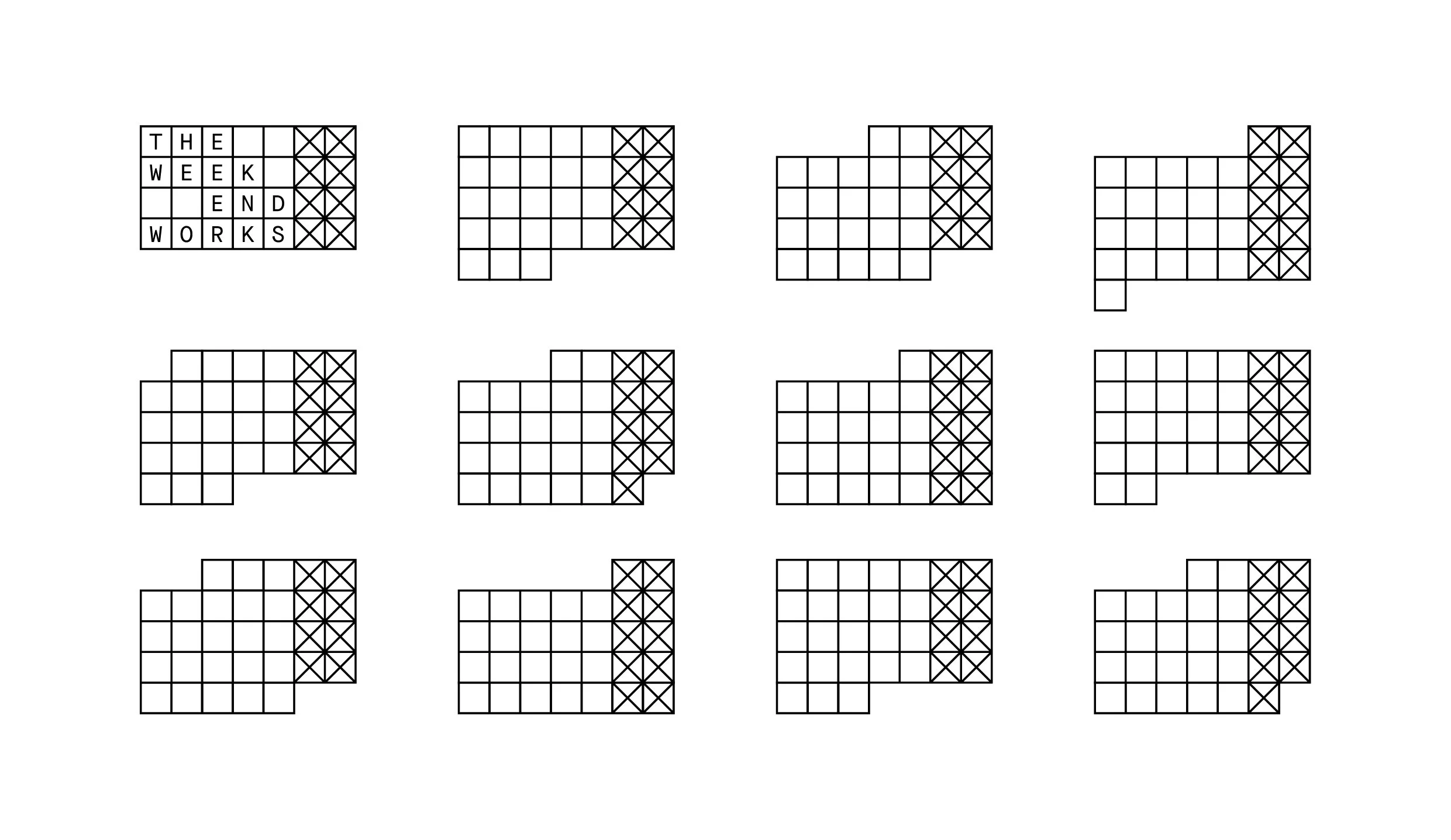 The Weekend Works is a visual collaboration between myself and photographer Sarah Anderson. We use this platform to explore ideas and experiment with still life outside of our day jobs. As we both work full-time jobs, the only time we have available to work on these projects is on the weekends. The mark uses a monthly calendar template, with two days — Saturday and Sunday — being crossed out as marked days for us to work. The brand's copy also illustrates in the opposite way our availability — with Monday to Friday struck out.